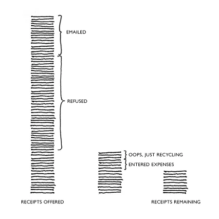 2. I track expenses digitally: I keep a few receipts when I get home so I can reconcile them with my budget. I use Mint.com for this so once I can confirm the expense or categorization, I can ditch the receipt.